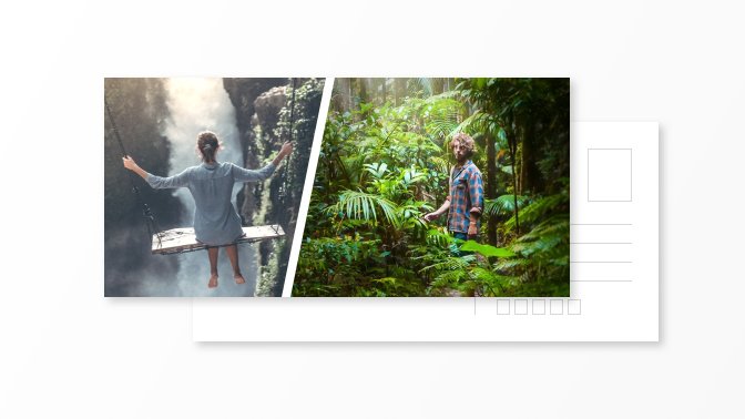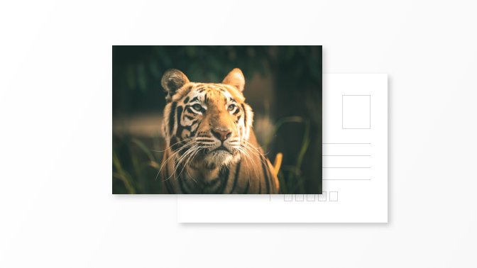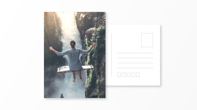 Postcard with one portrait photograph and custom text on the back.